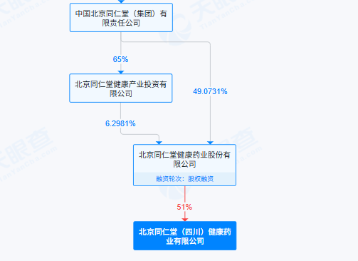 北京同仁堂(四川)药业的控股激动为北京同仁堂健康药业股份有限公司,握股比例51%,后者雷同为北京同仁堂集团的孙公司。天眼查涌现,现在北京同仁堂集团班师握股49.0731%,并通过北京同仁堂健康产业投资有限公司迤逦握股6.2981%。